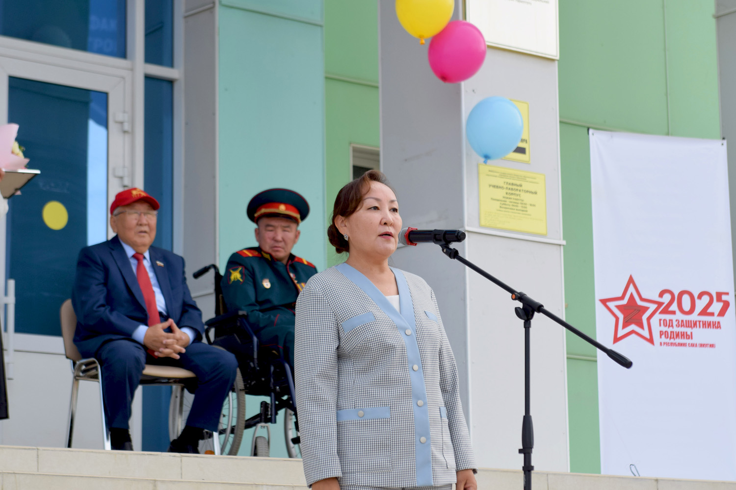 Ректор АГАТУ Валерий Федоров сообщил, что в этом году университет пополнился более чем 900 новыми студентами. Он заверил первокурсников, что преподаватели приложат все усилия для передачи знаний, необходимых для работы на благо АПК. В знак глубокого уважения и признательности ректор вручил Герою России Алексею Петрову (позывной «Медведь») традиционный якутский чорон и приветственный адрес.